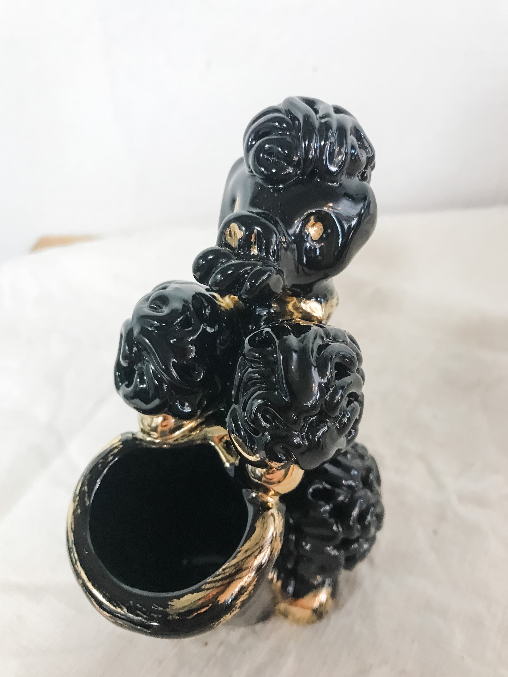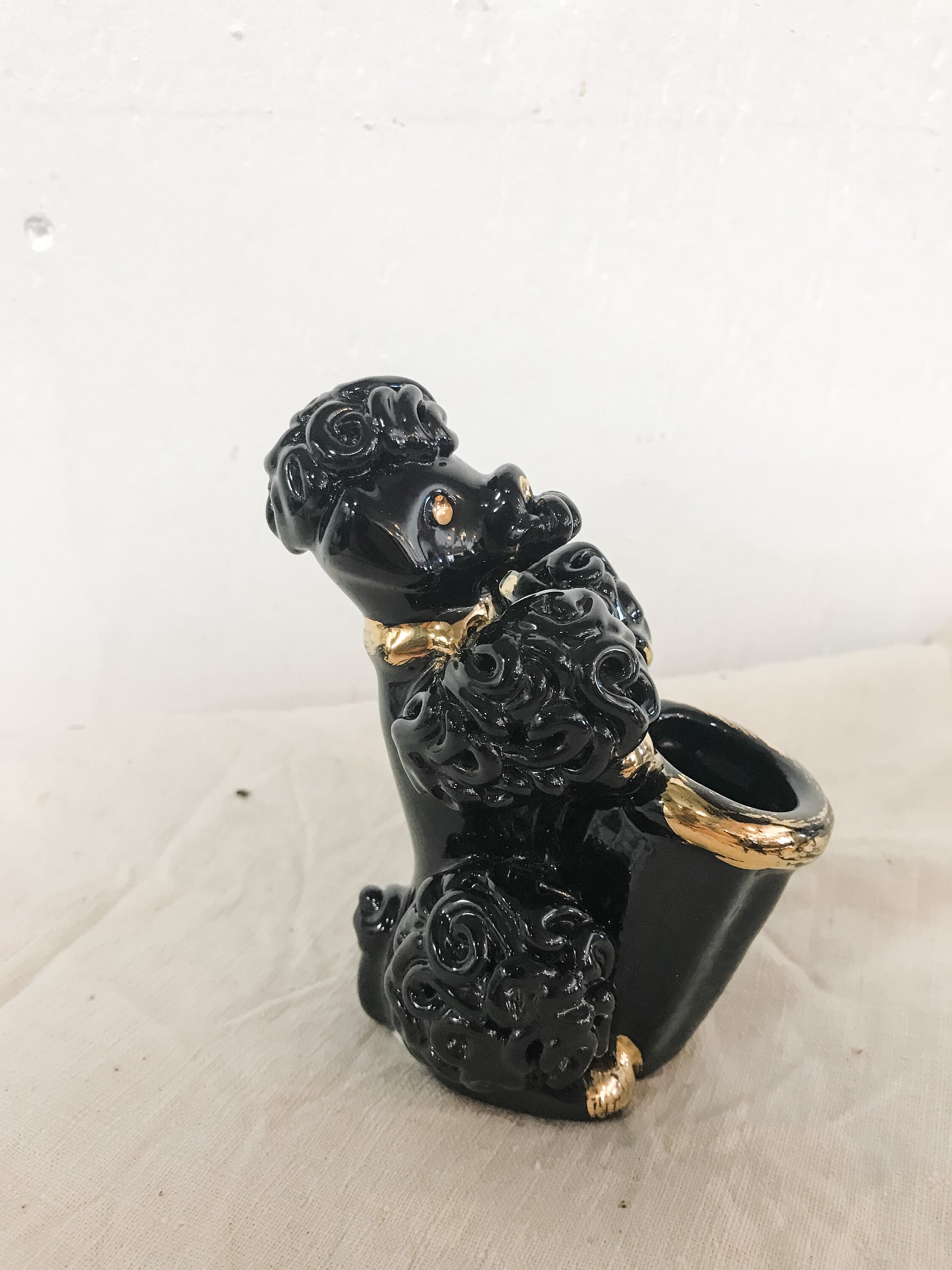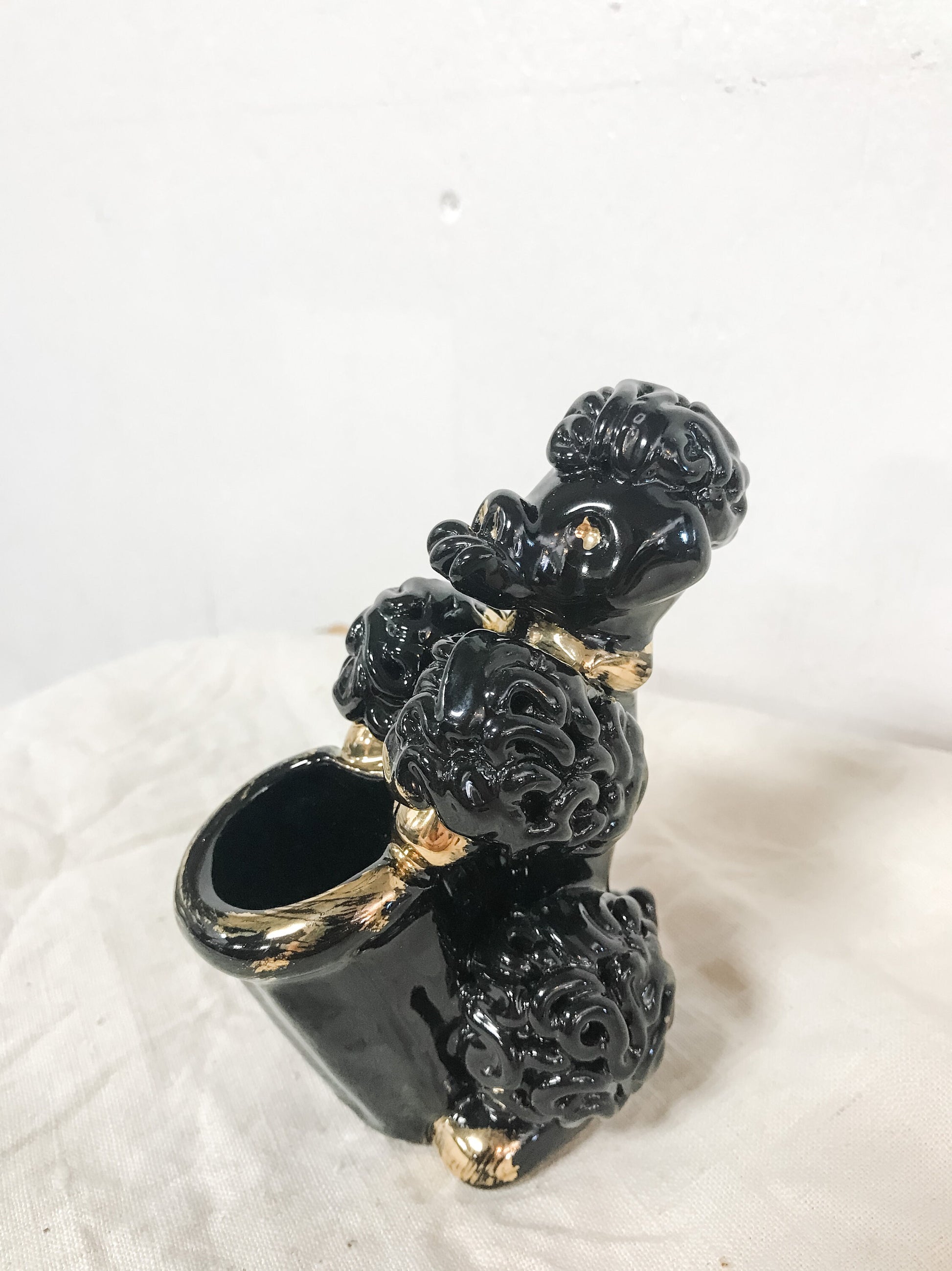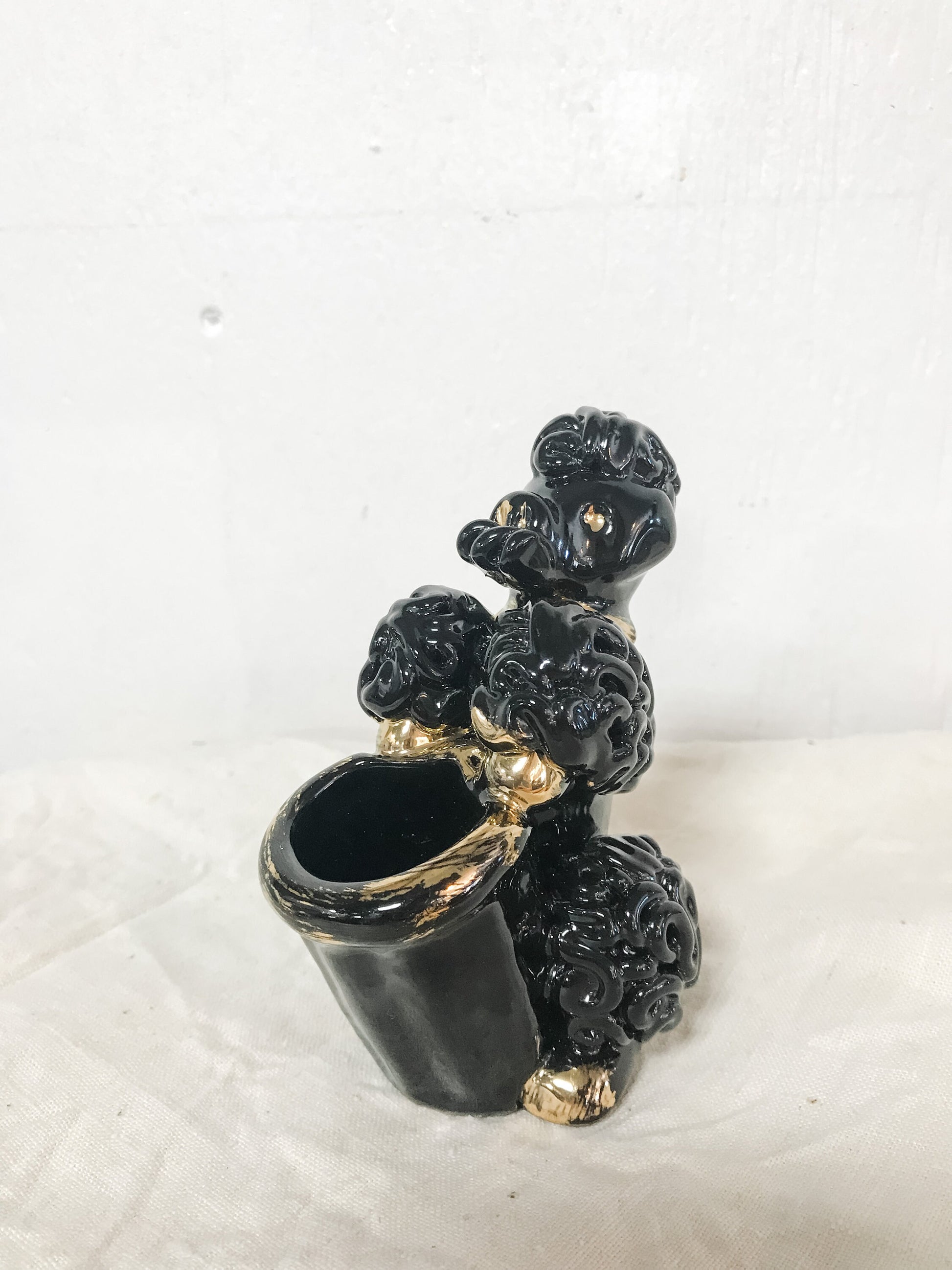 Adorable little glass 1950s French poodle figurine. Use for matches, bobby pins, flowers, or whatever your heart desires! This little lady is approximately 5" tall with no flaws to note.