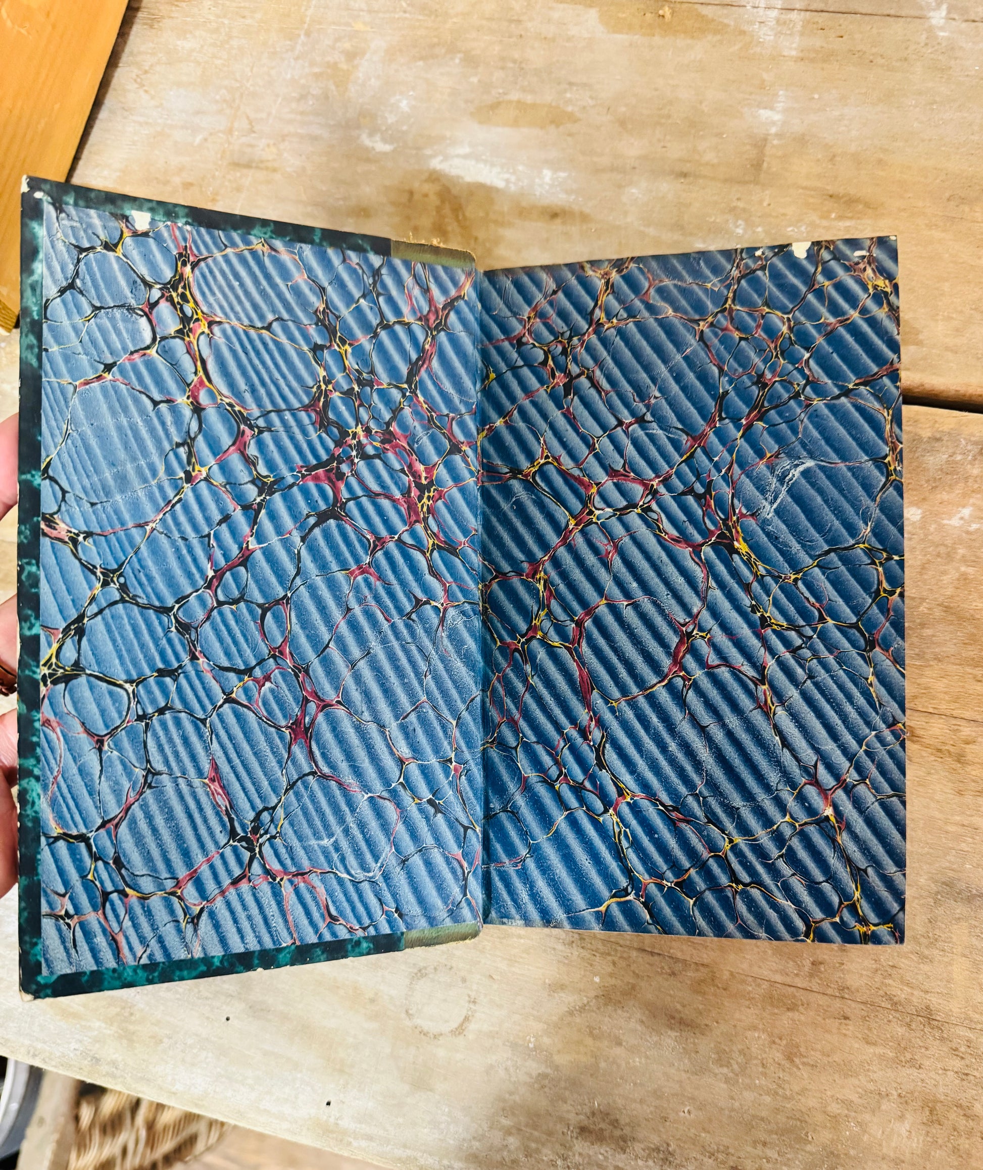 Beautifully bound in marbled hardcovers with a green cloth spine and gilt-lettered title, this edition showcases rich marbled endpapers and well-preserved typography. Pages show expected age-toning and foxing, adding to its timeless character. A stunning piece for book collectors, French literature enthusiasts, or anyone drawn to old-world charm.